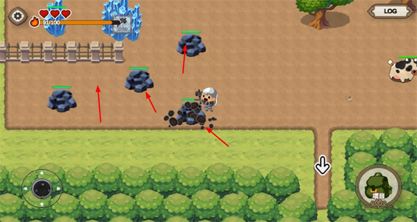 2、采集场景中的矿石资源,为后续建造、升级积累必要的材料。