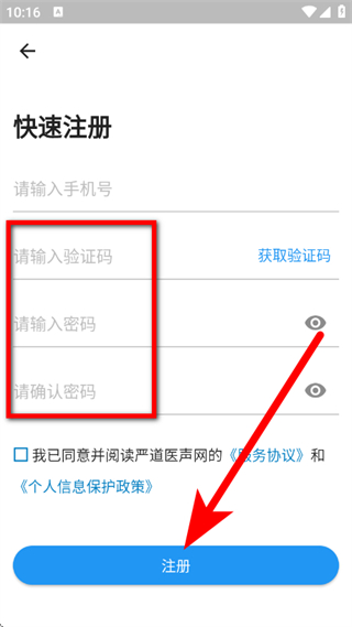 5、输入验证码,设置密码,勾选相关协议后,点击注册,完成账号创建。