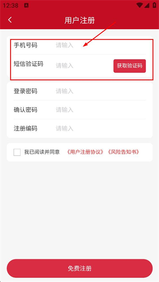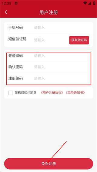 4、最后填写登录密码、确认密码、注册编码,点击免费注册。