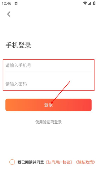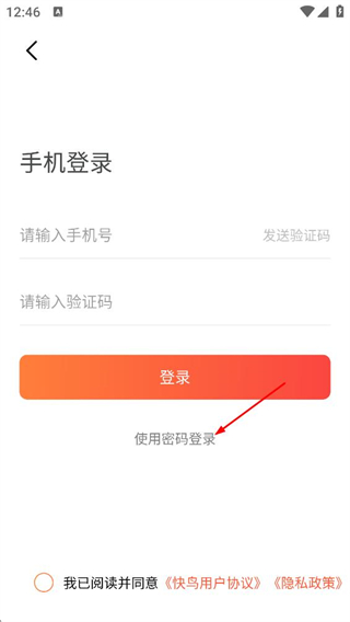 4、在密码登录界面,填写手机号和密码,勾选同意协议后点击登录。