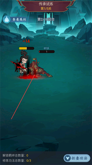 1、在传承试炼第1/5关第2回合,操控角色攻击敌方树妖,造成伤害推进战斗。