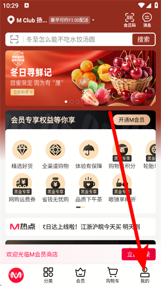 1、在m会员商店首页,点击底部我的,进入个人页面。