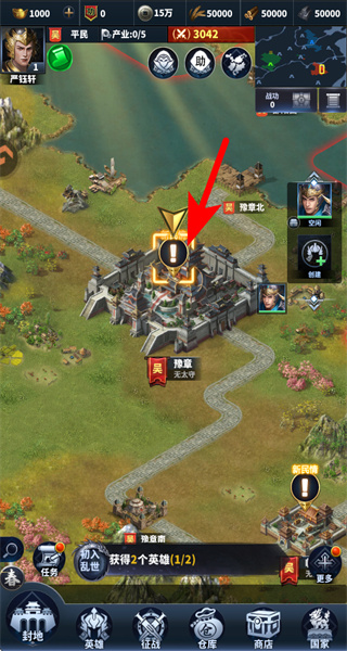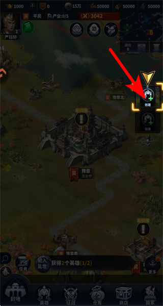 2、进入主场景后,点击右侧的招募按钮,打开武将招募界面,获取初始武将资源。