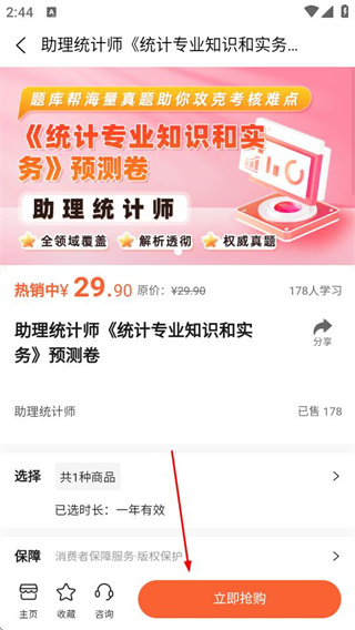 3、在试卷详情页,点击立即抢购按钮,可进入确认订单页面。