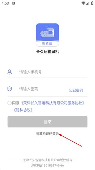 2、在登录页面,点击获取验证码登录的选项,切换到验证码登录界面。
