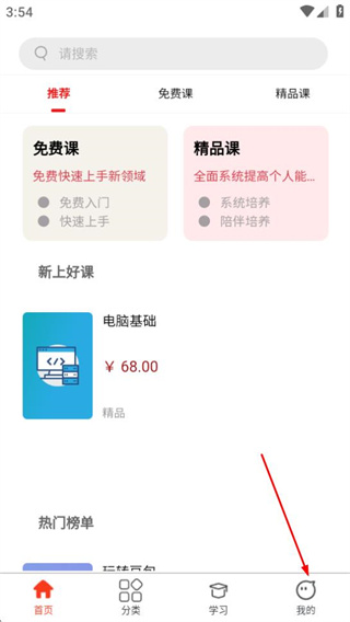 1、进入微服课堂后,点击底部的我的选项,可进入个人中心页面。