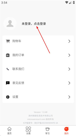 2、在个人中心页面,点击未登录点击登录区域,可进入登录页面。