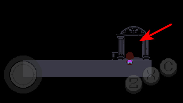 2、操控角色移动到场景右侧的拱门位置,靠近该区域即可进入下一个游戏场景,继续推进游戏流程。