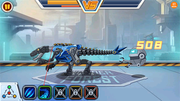 1、操控机械恐龙进入对战场景,准备与敌方机器人展开战斗。