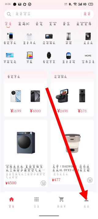 1、在捷优品首页,点击底部我的按钮,进入个人页面。