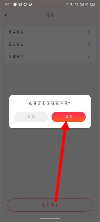 4、在弹窗中,点击确定按钮,完成账户注销。
