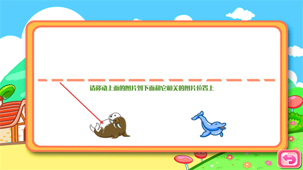 3、依据屏幕中的提示,将上方的海象拖至下方对应的海象图案位置完成该轮匹配。