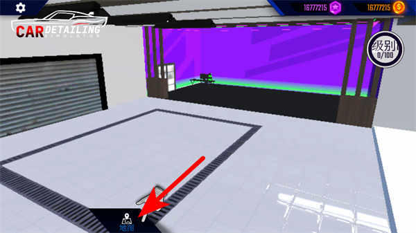 3、进入洗车场场景后,点击界面下方的地图按钮,可返回地图界面,继续进行其他场景的操作。