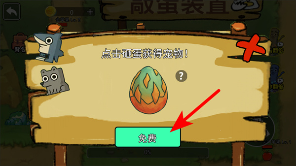 3、在砸蛋界面点击免费按钮,即可砸开当前彩蛋,获取对应的宠物,助力后续游戏战斗与养成。