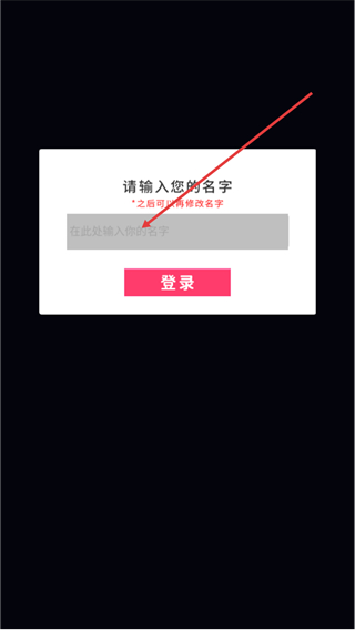 1、在该界面的输入框中填写名字,界面提示之后可以再修改名字,填写完成后点击登录按钮即可进入应用。