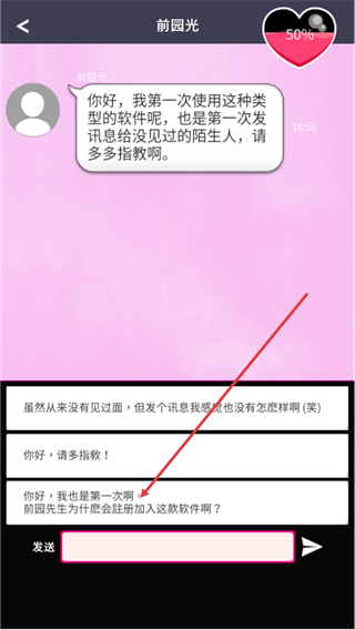 4、在输入框中选择对应的回复内容,比如回应对方的消息并发起相关询问,编辑完成后发送以推进聊天互动。