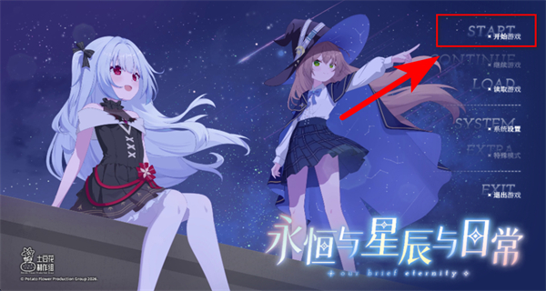1、在永恒与星辰与日常的游戏主界面,点击START开始游戏的选项,进入游戏的剧情流程。
