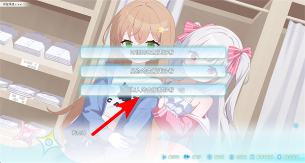 2、在对话选择界面,点击目标选项如图中的别人的东西就是好看,推进角色间的互动剧情。