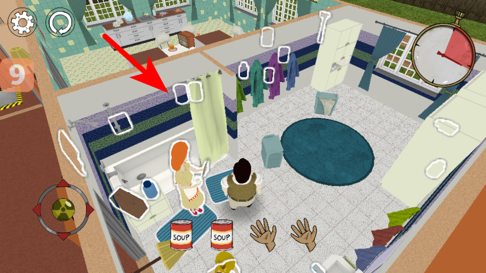 3、进入房屋场景后,在倒计时结束前,收集场景中的物资如罐头,为地下生存储备资源。
