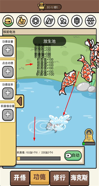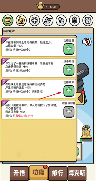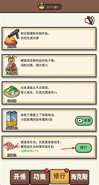 2、消耗功德进行修行,解锁新功能与增益,拓展养成维度。