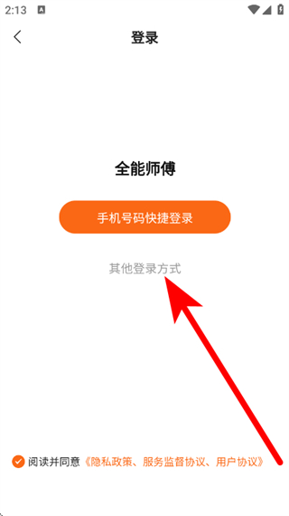 3、在登录选择页面,点击手机号码快捷登录,进入登录注册页面。