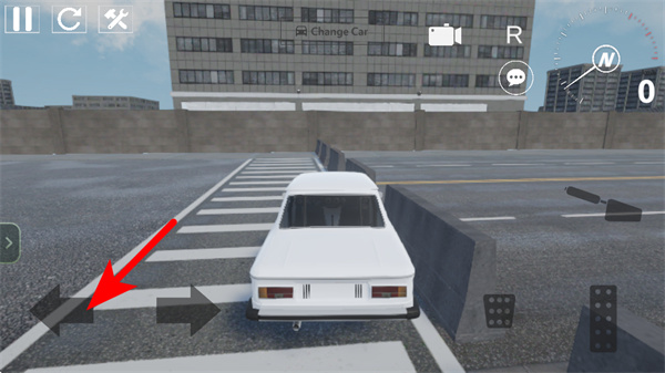 3、紧跟红色箭头指引,点击左侧的方向按钮调整车辆行驶方向,躲避赛道障碍,保持车辆的平稳行驶。