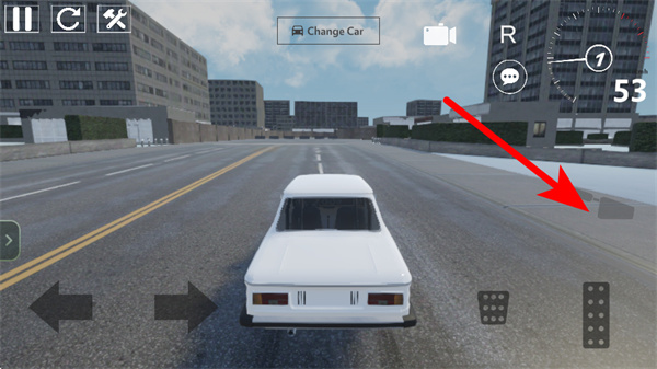 2、游戏中依照箭头指引,点击右侧的加速按钮控制车辆前进,同时留意赛道布局,确保车辆行驶在道路范围内。