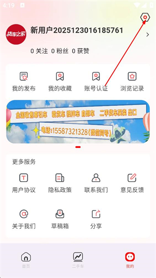 1、在货车之家首页,点击底部的我的选项,进入个人页面。