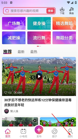 2、在天天乐舞首页,点击底部的我的选项,我们即可进入登录页面。