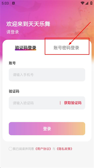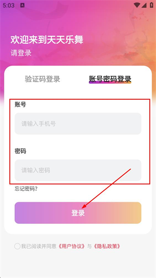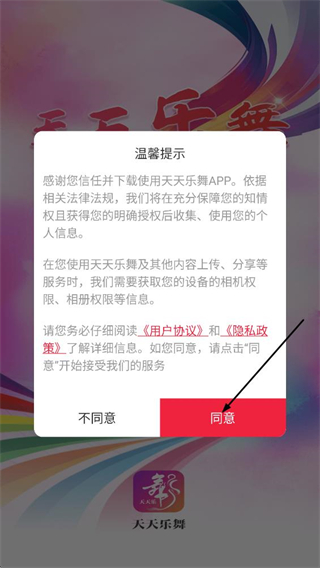 1、阅读用户协议和隐私政策后,点击同意按钮,进入天天乐舞首页。