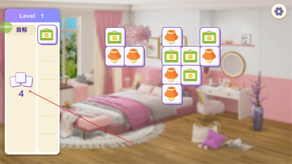 1、在Level1界面,查看左侧目标栏,需收集对应物品,先匹配绿色图案物品,推进收集进度。