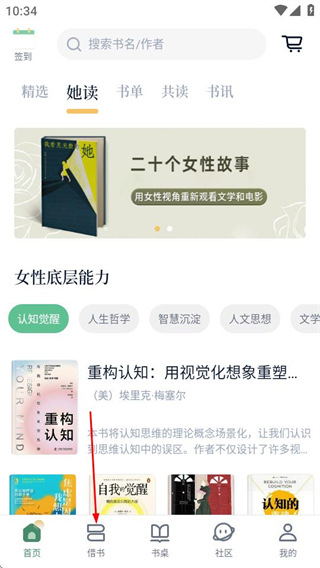 1、进入藏书馆后,点击底部的借书选项,可进入借阅馆页面。