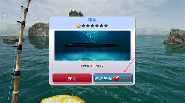 4、钓起鳗鱼后,选择放弃或消耗道具再次挑战。