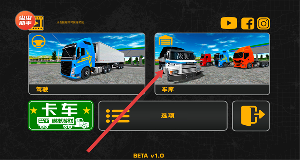 1、在游戏主界面,点击“车库”选项,进入车辆管理界面,查看已解锁的卡车。
