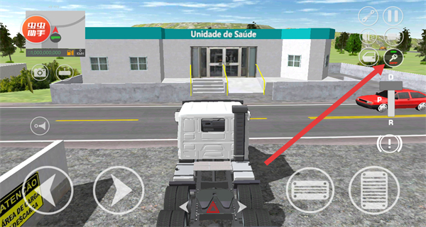 3、进入驾驶场景后,按提示点击钥匙按钮,启动卡车,激活车辆的驾驶功能,准备操控行驶。