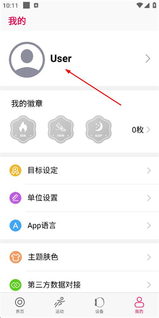 2、在个人中心页面点击User区域,进入个人信息详情页面。