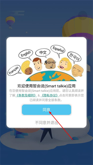 1、阅读条款及规则和隐私协议后,点击弹窗中的同意按钮,进入智由说主界面。