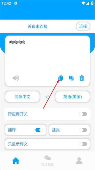 2、在智由说主界面,点击文本区域下方的功能按钮,进入语言设置相关操作界面。