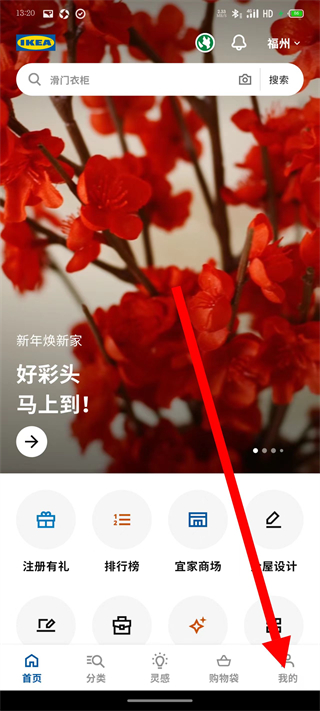 1、在IKEA宜家家居页面,点击底部我的选项,进入个人页面。