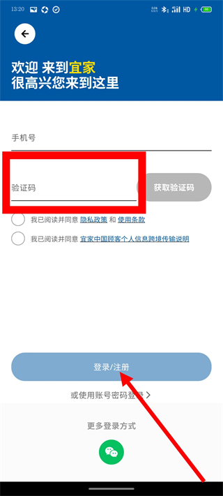 4、输入验证码,勾选相关协议后,点击登录注册,完成注册。