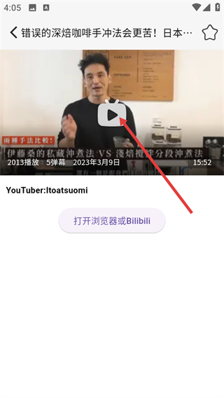 3、在内容详情页面,点击播放按钮,即可观看该冲煮攻略视频。