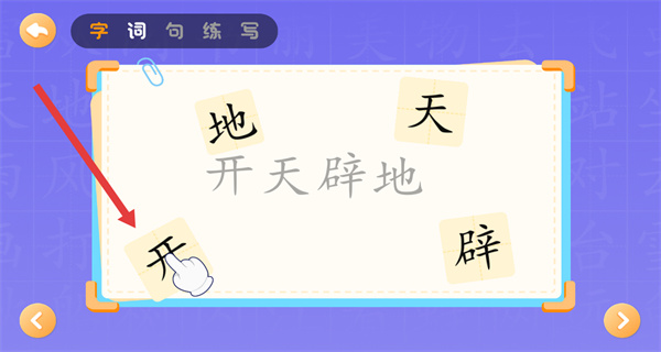 3、在字词句练写模块,按照顺序点击汉字卡片,完成词语的组合练习。