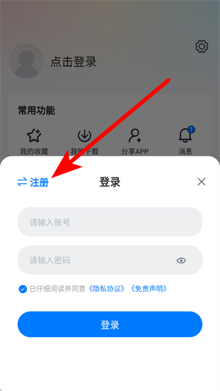 2、在个人中心页面点击点击登录区域,弹出登录注册的选择窗口。