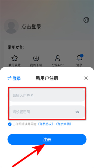 4、在注册页面填写注册信息,勾选协议后,点击注册完成账号注册。