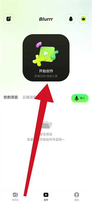 3、在创作页面点击开始创作,进入新建项目的设置界面。