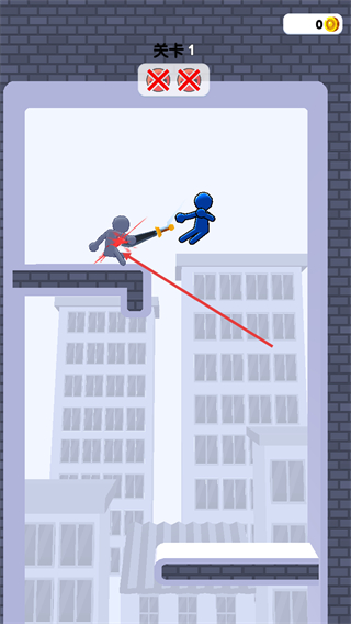 2、进入关卡1,需操控角色挥舞宝剑攻击对手,按指引向敌方角色方向操作,触发攻击动作以推进战斗进程。
