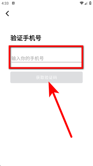 2、在验证手机号页面,输入手机号,点击获取验证码。