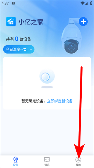 1、打开小亿之家首页,点击底部我的,进入个人页面。