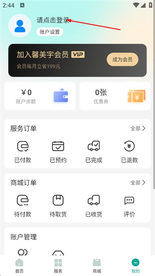 2、随后在个人页面,点击请点击登录按钮,进入登录选择页面。