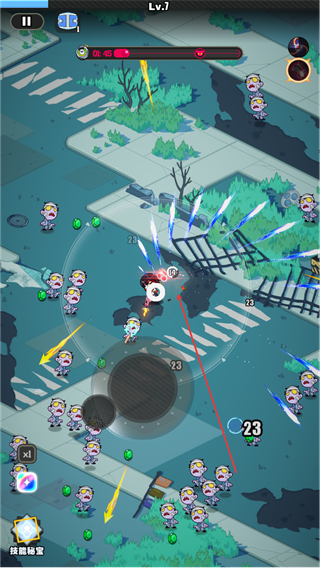 核心玩法采用“自动射击+滑动走位”模式,无需手动瞄准开火,角色靠近敌人即触发疯狂输出,轻松实现大范围清屏,体验尸潮瞬间湮灭的极致割草快感。